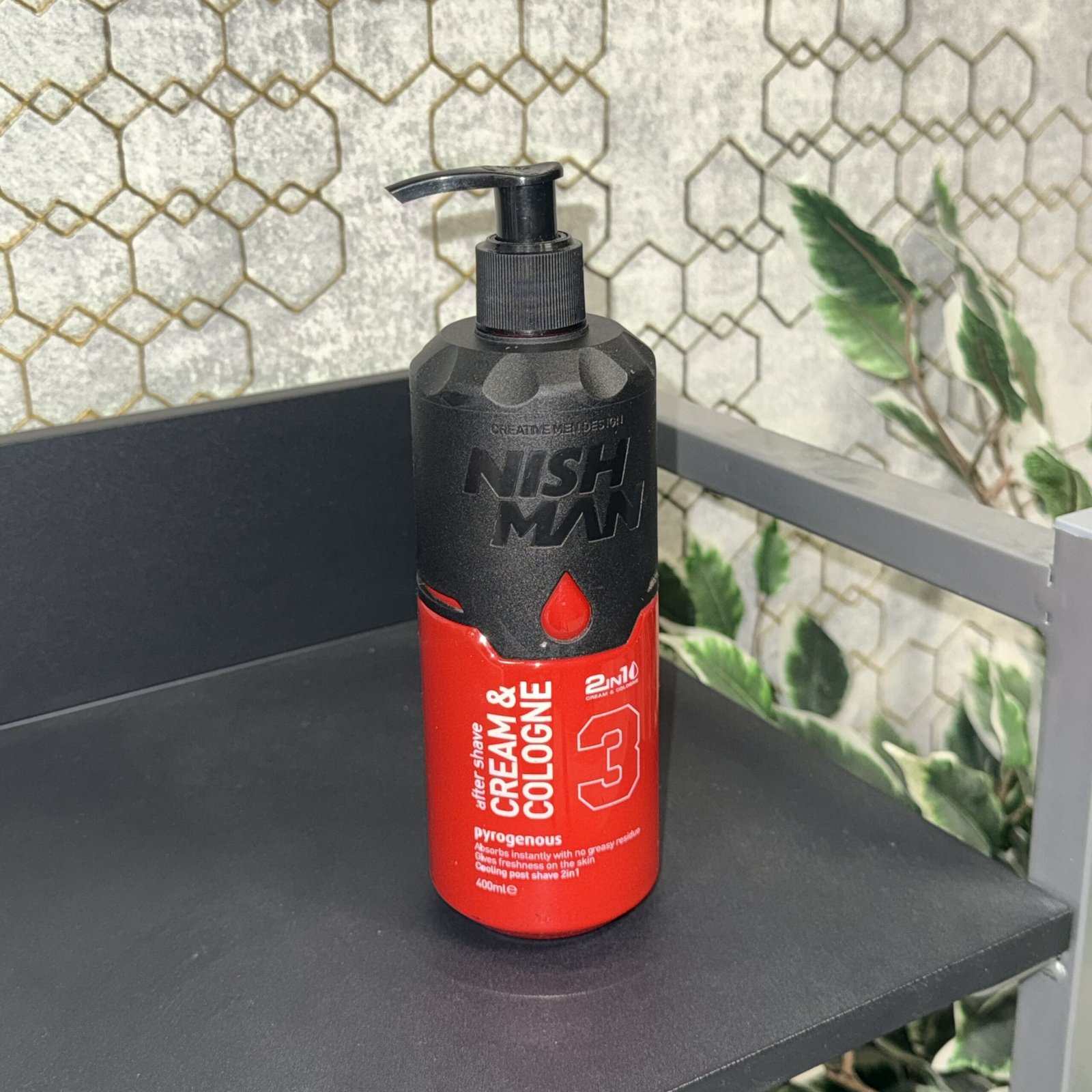 The Nish Man After Shave Cream & Cologne combines hydration and fragrance in one step. It calms the skin after shaving while deeply moisturizing to prevent dryness and irritation.